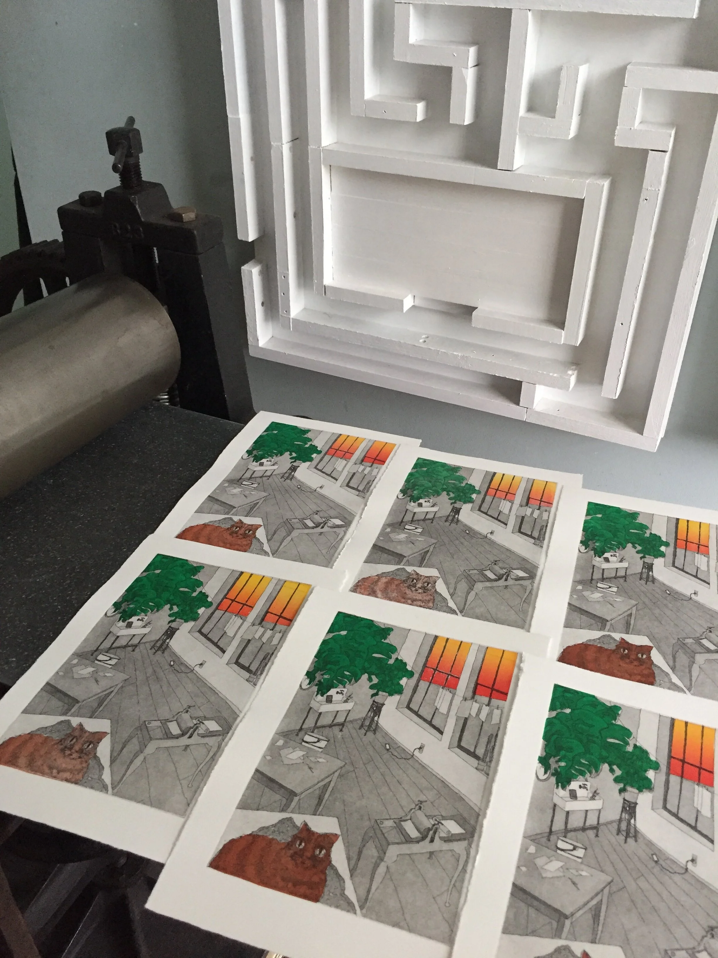 Charbonnel Inks. Acid Free Bright White Hahnemuhle Copperplate Paper, mounted on 14 ply Rising Museum Board matting.